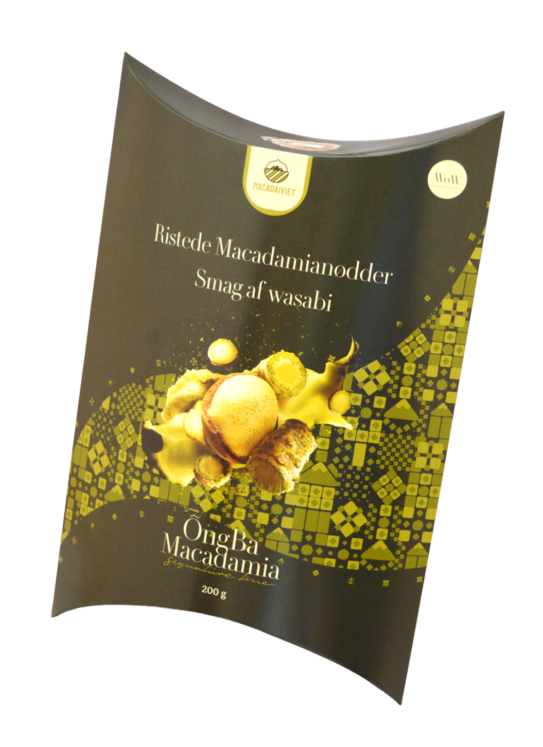 Sprøde macadamianødder kombineret med et fint afstemt strejf af wasabi. Nøddernes naturlige, cremede fylde danner et roligt fundament, mens wasabien tilfører en let varme og friskhed, der langsomt folder sig ud.